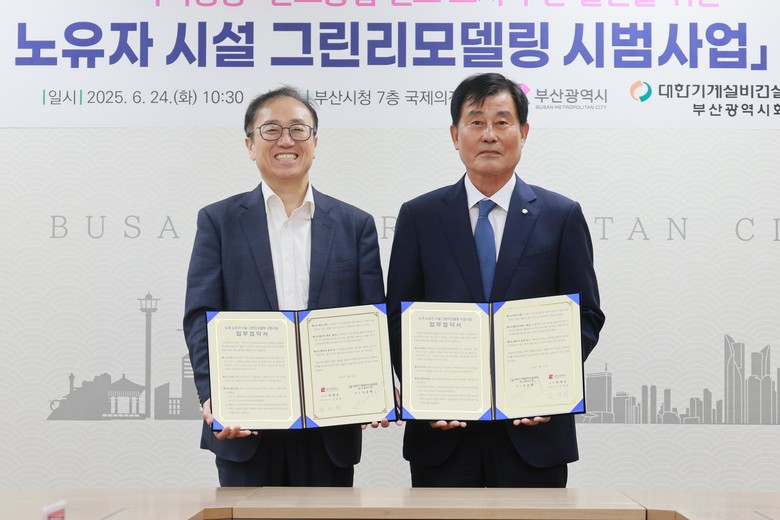 [부산 세계타임즈=이용우 기자] 부산시(시장 박형준)는 어제(24일) 오전 10시 30분 시청 국제의전실에서 대한기계설비건설협회 부산광역시회(회장 김종배, 이하 협회)와 「노후 노유자 시설* 그린리모델링 시범사업」 업무협약을 체결했다고 밝혔다.