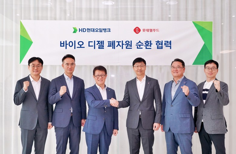 최근 HD현대오일뱅크는 대산공장에 연산 13만 톤 규모의 바이오디젤 생산 공장을 준공하고 이달부터 본격적인 상업 가동에 나섰다. 국내 최대 규모 식용유지 사업자인 롯데웰푸드는 안정적인 원료 공급을 통해 원활한 바이오디젤 생산을 돕는다. 롯데웰푸드는 HD현대오일뱅크에 연간 2만톤 이상의 재활용 자원을 공급할 계획이다.
