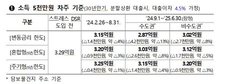 2단계 스트레스 DSR에 따른 대출한도 변화[금융위 제공]