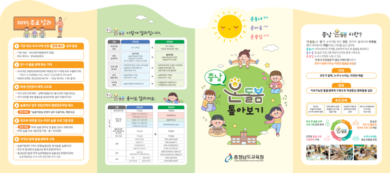 이를 위해 광역·지역·학교 단위로 지자체, 교육(지원)청, 대학, 기업 등이 참여하는 돌봄 협의체를 구성해 지속 가능한 돌봄 지원 체계 구축에 나선다. 또한 대학 및 범정부 기관과의 연계 사업을 확대하고, 방과후·돌봄 실무 인력의 전문성 강화를 통해 운영 프로그램의 질을 높일 계획이다. 아울러 참여 학생에 대한 안전관리와 방과후 프로그램 강사 검증을 더욱 강화해 학부모가 안심하고 자녀를 맡길 수 있는 돌봄 환경을 조성하고, 취약계층과 소외지역에 대한 지원도 집중적으로 추진한다.
