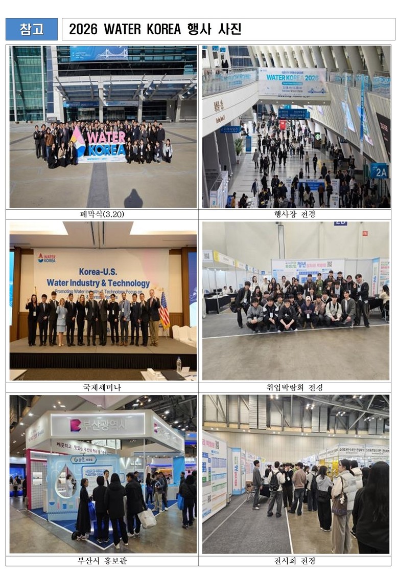 [부산 세계타임즈=이용우 기자] 부산시 상수도사업본부(이하 본부)는 지난 3월 18일부터 20일까지 3일간 벡스코(BEXCO)에서 열린 「WATER KOREA 2026」(이하 박람회)을 성황리에 마쳤다고 밝혔다.