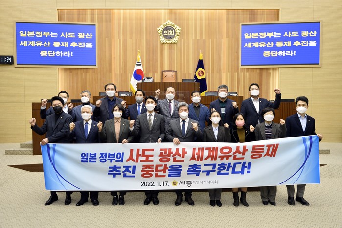하나, 세종특별자치시의회는 일본 정부가 ‘일본 근대산업시설’의 세계유산 등재 관련 유네스코 세계유산위원회의 결정과 스스로 약속한 후속조치를 성실히 이행하기 전까지 사도 광산의 유네스코 세계유산 등재 추진을 중단할 것을 촉구한다.