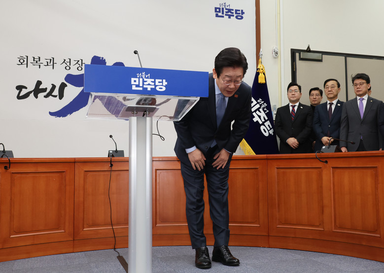 더불어민주당 이재명 대표가 23일 오전 서울 여의도 국회에서 열린 기자회견을 마친 후 인사하고 있다. 2025.1.23