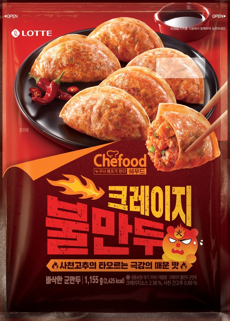 [세계타임즈 = 이현진 기자] 롯데웰푸드(옛 롯데제과)는 가정간편식 만두제품 ‘쉐푸드(Chefood) 크레이지 불만두’를 출시했다. 소비자들 사이에서 야식, 안주 메뉴로 꾸준하게 인기를 끌고 있는 매운맛 식품 시장을 공략한다.