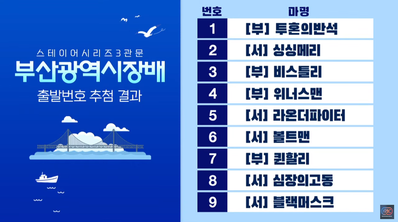 - 부산 위너스맨 vs 서울 라온더파이터, 2일 ‘부산광역시장배’ 장거리 최강마 가린다