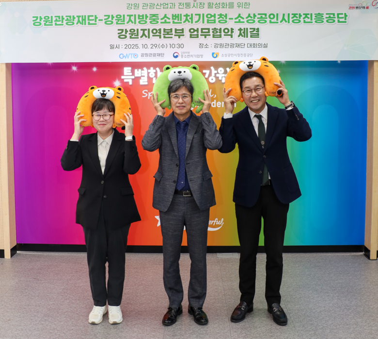 [강원도 세계타임즈=김민석 기자] 강원관광재단(대표이사 최성현, 이하 재단)과 강원지방중소벤처기업청(청장 박순홍), 소상공인시장진흥공단 강원지부(본부장 백순임)은 10월 29일 수요일 강원 관광산업과 전통시장 연계 활성화를 위한 업무협약을 체결했다고 밝혔다.