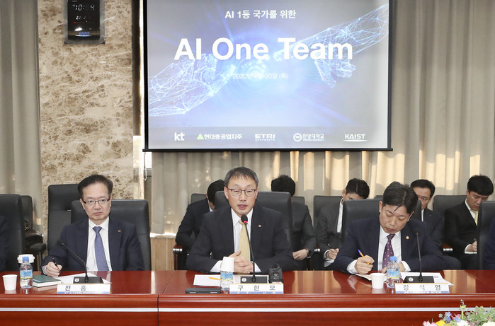 올해 2월 출범한 AI 원팀은 KT를 포함해 현대중공업그룹, KAIST, 한양대, ETRI 5개 기업 및 기관이 참여하고 있다. AI 생태계 조성, AI 인재 양성 등을 통해 AI 1등 대한민국을 만드는데 일조하는 것을 목표로 하고 있다.