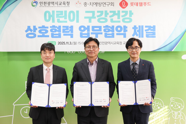 [인천 세계타임즈=심하린 기자] 인천광역시교육청(교육감 도성훈)은 3일 충·치예방연구회, 롯데웰푸드㈜와 함께 관내 어린이의 구강건강 증진을 위한 업무협약을 체결했다.