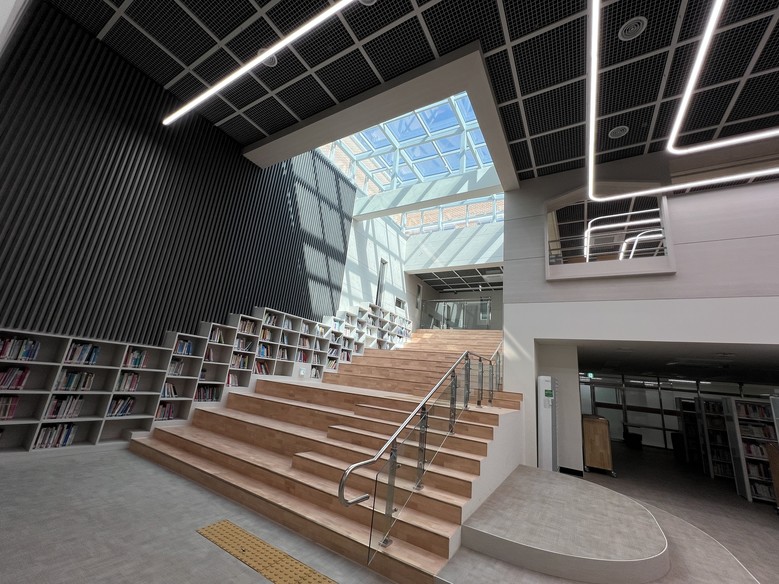 | ▲ 농성초 도서관. 2~3층 복층 공간에 개방형 구조를 갖추고, 다양한 학생 활동을 할 수 있도록 했다. |
