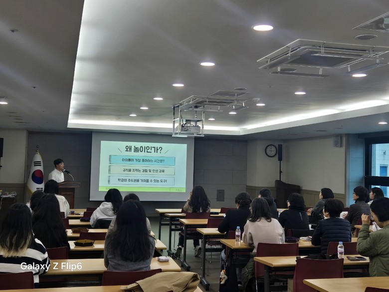이번 워크숍은 교실 놀이에 대한 이론적 배경을 시작으로, 교실에서 활용할 수 있는 게임을 교사들이 직접 체험하는 활동 중심으로 운영되었다. 특히, 교실 놀이를 직접 실습해봄으로써 더욱 흥미있고 현장감 넘치는 내용으로 진행되었다.