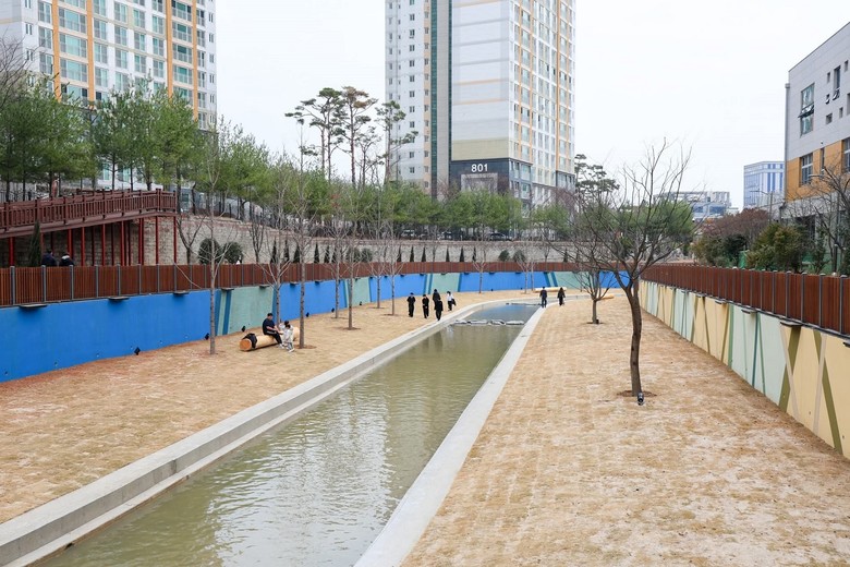 또한 주거지역과 상업지역을 잇는 산책 동선과 휴식 공간을 조성해 낮에는 여유로운 산책 공간으로, 야간에는 조명이 더해진 안전한 수변 공간으로 탈바꿈했다.