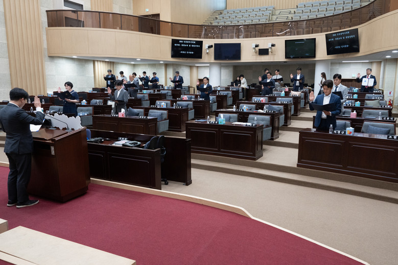 인천시의회 전체 의원과 의회사무처 간부공무원들은 ▶청렴한 사회 실현에 솔선수범할 것 ▶공정하고 투명하게 업무를 수행해 공익을 수호할 것 ▶금품 향응 수수, 권한 남용, 이권 개입, 알선 청탁 등을 하지 않을 것 ▶공직을 수행하며 직위를 이용한 사적 이익을 추구하지 않을 것 등을 선언하는 청렴 서약식을 통해 투명하고 공정한 업무 수행과 청렴한 의회상 구현에 앞장설 것을 다짐했다.