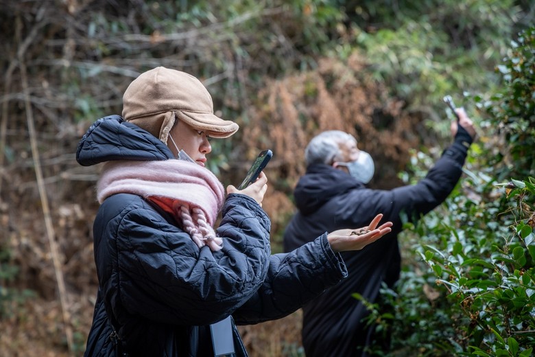 | ▲ 신광수 명인의 야생차밭에서 차 이야기를 듣고 씨앗을 관찰하며 현장을 체험하는 참가자들 |