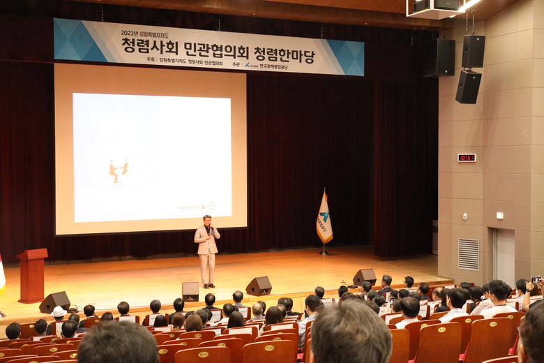 KOMIR 황규연 사장은 환영사에서“강원특별자치도 원년을 맞이하여 강원지역을 대표하는 청렴행사인 청렴한마당 행사를 주관하게 되어 매우 기쁘게 생각한다”며 “KOMIR는 청렴한 사회를 만드는 데 적극 동참하고 강원지역 청렴문화를 선도하는 공공기관이 되도록 더욱 노력하겠다”고 밝혔다.