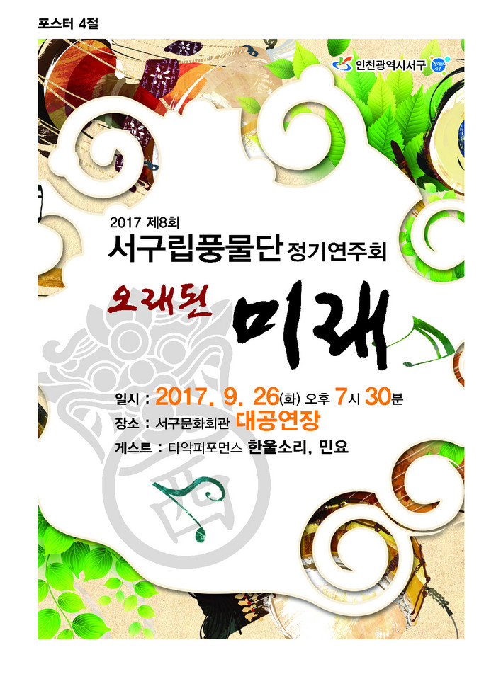 인천시 서구(구청장 강범석)는 오는 26일 저녁 7시30분에 서구문화회관 대공연장에서 『제8회 서구립 풍물단 정기연주회』를 개최한다.