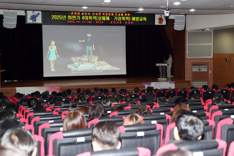 [옹진군 세계타임즈=심하린 기자] 옹진군(군수 문경복)은 27일, 공직사회의 성평등 문화 확산과 폭력 예방을 위해 전 직원을 대상으로 4대 폭력 예방 교육을 실시했다고 밝혔다.