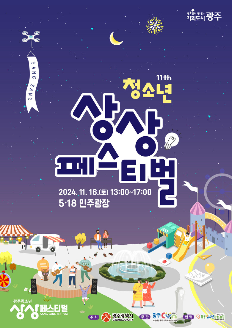 [광주 세계타임즈=손권일 기자] 광주광역시(시장 강기정)는 오는 16일 5·18민주광장 일대에서 지역 청소년들이 직접 기획하고 준비한 ‘2024 광주청소년 상상페스티벌’(이하 상상페스티벌)을 연다.