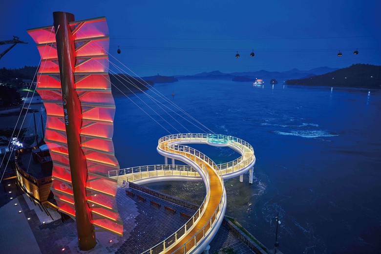영광 칠산타워는 서해의 낙조와 칠산 앞바다를 조망할 수 있는 전망 명소다. 상층부 전망대에서 펼쳐지는 바다 풍경이 특히 인상적이다.