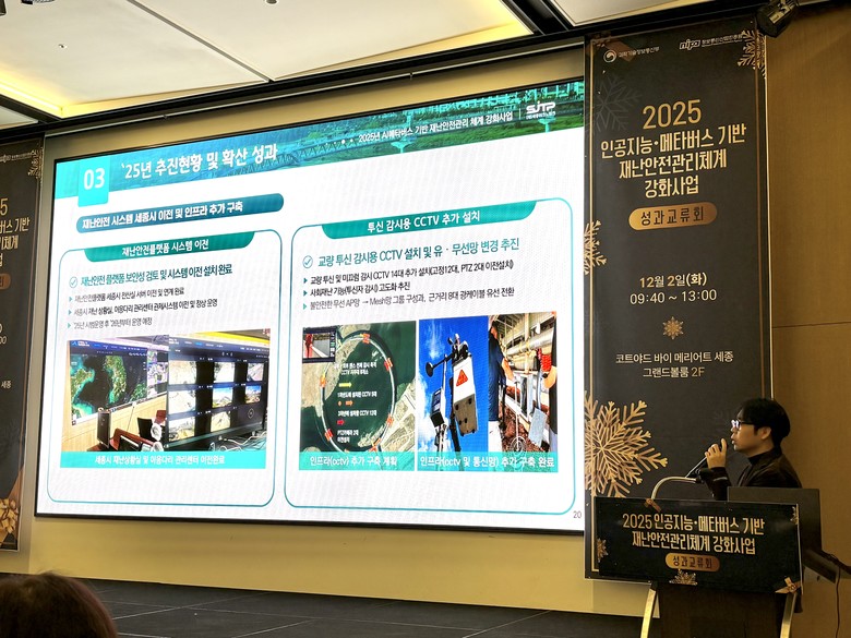 이윤정 미래산업과장은 “재난안전사고 증가에 대응하기 위해 세종시 여건에 맞는 인공지능 기반 재난안전관리체계를 마련해 왔다”며 “앞으로도 인공지능·메타버스 기술을 활용한 재난안전관리 시스템을 지속 실증하고 확대 적용하기 위해 노력할 것”이라고 말했다.