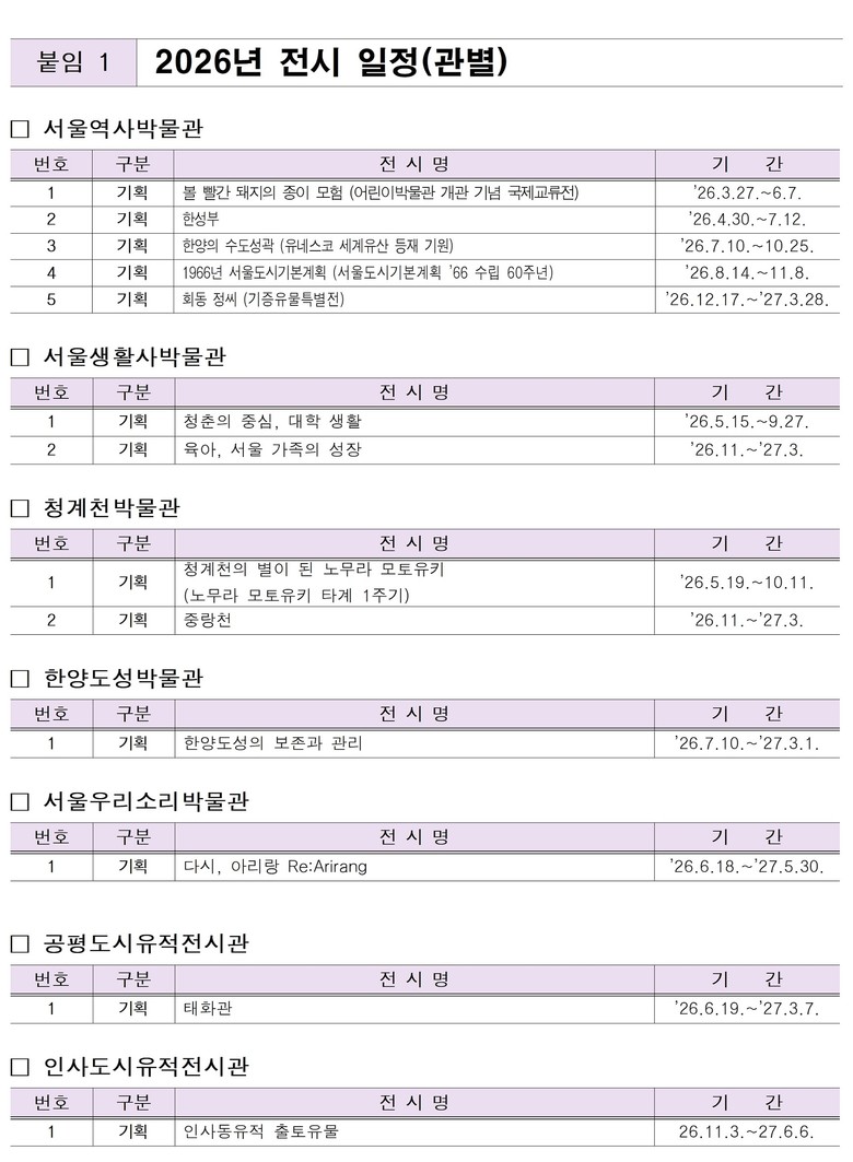 서울역사박물관은 시민들의 새로운 문화 수요에 대응하여 2026년 어린이박물관과 인사도시유적전시관을 새롭게 개관하고, 본관과 15개 분관을 유기적으로 연결하는 박물관 체제를 완성한다. 이를 통해 서울 전역의 역사·문화 거점을 하나의 도시 역사 네트워크로 묶는 플랫폼형 박물관으로 자리매김한다.