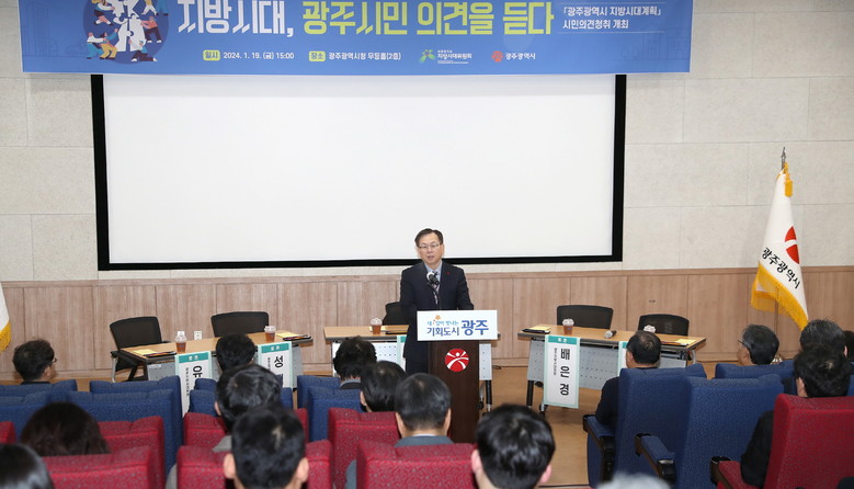 의견수렴은 ▲지방시대위원회의 ‘지방시대 종합계획’ ▲산업통상자원부의 ‘기회발전특구 추진계획’ ▲광주시의 ‘지방시대 계획 및 초광역권 발전계획’과 ‘2024년 광주광역시 시행계획 및 초광역권 발전 시행계획 수립방향’에 대한 발표와 광주지방시대위원들의 광주발전 전략 모색방안 토론, 시민의견 청취 순으로 진행됐다.