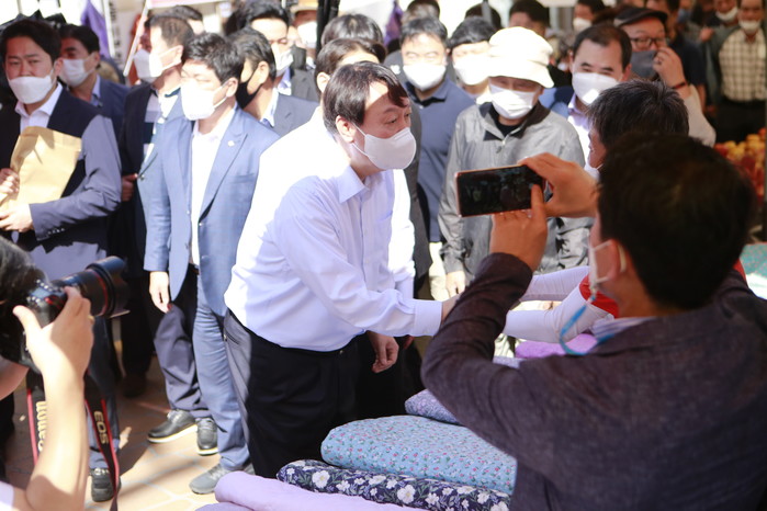 일부 상인들은 상인들과 주민들 틈에서 땀을 흘리는 尹후보에게 시원한 물을 대접하며 응원의 목소리를 외치기도 했다.