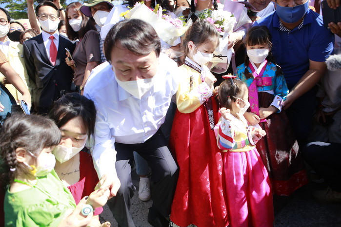 [세계타임즈 이진화 기자] 야권 유력대선 후보 국민의힘 윤석열 후보가 홍준표 후보의 고향 창녕군을 전격 방문해 지역민들의 열화같은 환영을 받았다.