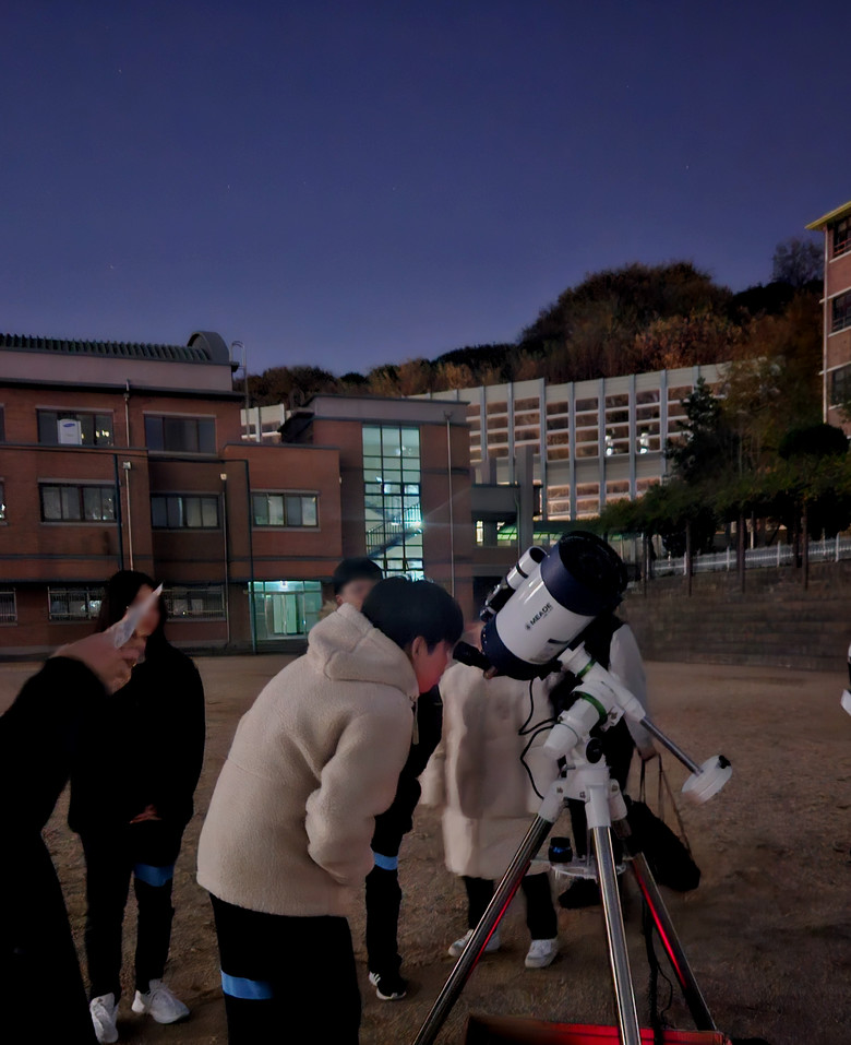 [남양주시 세계타임즈=송민수 기자] 경기도구리남양주교육지원청 동구중학교(교장 이승희)는 11월 7일 1, 2, 3학년 학생 40명을 대상으로 천체 관측 캠프를 운영하였다. 동구중학교의 천체 관측 캠프는 2022년 위드코로나 시기 학생들에게 우주에 대한 호기심을 충족시켜주는 경험을 제공함으로써 과학적 탐구력을 자극할 목적으로 시작하였으며, 학생들과 학부모님들의 열화와 같은 성원에 힘입어 2023년까지 이어지고 있다.