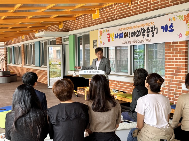 [남양주시 세계타임즈=송민수 기자] 경기도구리남양주교육지원청 다산한강초등학교(교장 이상호)는 10월 15일(화) 오전 10시에 본교 운영위원, 학부모회 임원, 남양주시 의회 원주영 의원 등이 참석한 가운데 꿈빛나래터(야외학습장) 개소식을 개최하였다.