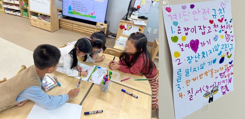 훈련 1일 차에는 유아와 교직원 모두가 함께 유치원 시설 안전을 점검하고, 학급 내에서는 안전한 유치원 환경 조성을 위한 토의 수업, 안전 포스터 만들기 활동 등 유아 참여형 활동이 진행됐다.