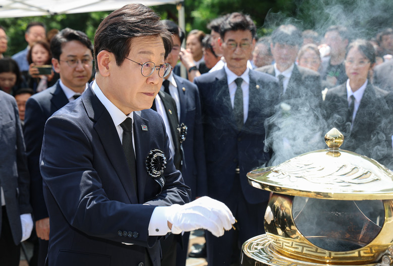 [세계타임즈 = 심귀영 기자] 더불어민주당 이재명 전 대표가 18일 오전 국립서울현충원에서 열린 김대중 전 대통령 서거 15주기 추모식에 참석해 분향하고 있다. 2024.8.18