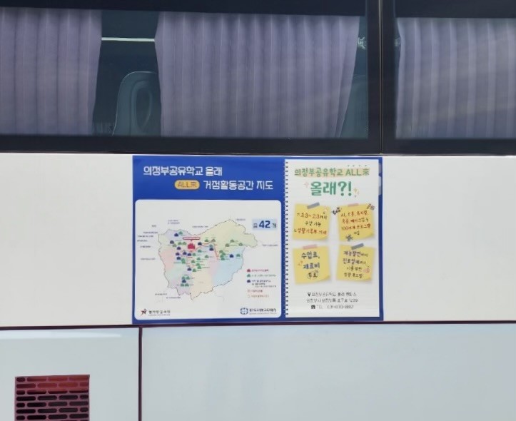 의정부 학생 통학버스는 의정부공유학교 올래(All來) 거점 활동 공간 9개 지점에 정차하며, 의정부공유학교 홍보 포스터를 부착하여 많은 학생들에게 알릴 예정이다.