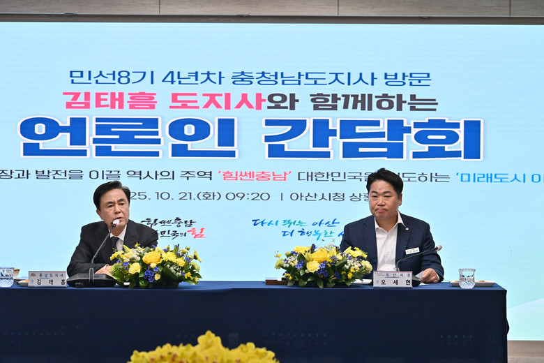 김태흠 지사는 21일 민선8기 4년 차 시군 방문 열 한번째 일정으로 아산시를 찾아 도민과 직접 소통하며 지속 가능한 미래 발전 방안을 논의했다.