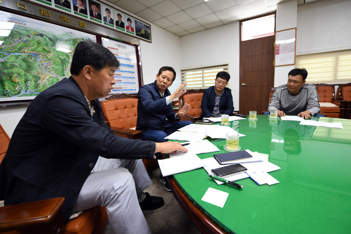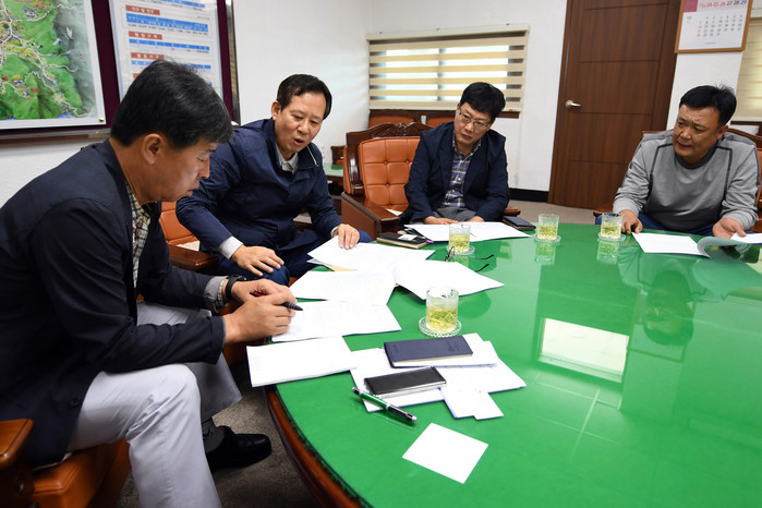 [양구군=세계타임즈 김민석 기자] 이상건 양구군의회의장이 27일 의장실에서 가스업 관계자들을 만나 당면사항을 협의했다.