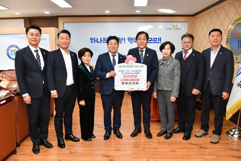 [평창군 세계타임즈=김민석 기자] 평창군의회(의장 심현정)는 2024년 2월 12일 평창군 군수 집무실을 방문하여 용평면 장평리 일대에 발생한‘LPG가스폭발 사고’피해주민들을 위해 써달라며 평창군에 성금 200만원을 전달했다.
