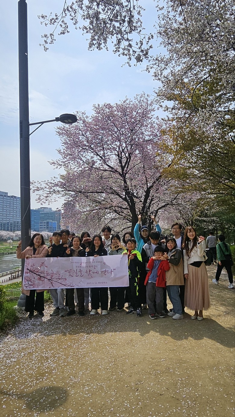 벚꽃이 만개한 안양천 일대에서 진행된 이날 행사는 꽃길 속 소통과 공감을 주제로 부모-자녀 손잡고 꽃길 걷기, 가족사진 촬영, 서로에게 편지 쓰기, 소감 나누기 등의 활동을 통해 가족의 유대를 강화하고 가정과 연계한 인성교육의 기반을 다졌다.