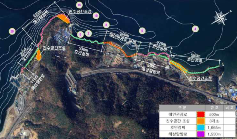 한편, 해당 지역은 연안류와 고파랑으로 인한 해변 침식 피해가 발생하고 있어, 이번 사업을 통해 침식된 해변을 복원하고 완충공간을 확보함으로써 관광자원의 활성화에 기여할 것으로 기대된다.