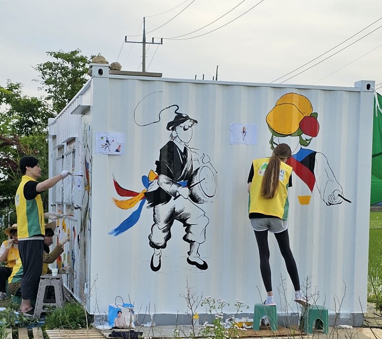 [세계타임즈 백진욱 기자] 신천지 자원봉사단 김포지부(지부장 이승민)는 봉성리에 위치한 김포시 농악보존회 (대표 장미화/(사)장애인멘토링 협회 지회장) 사무실로 사용중인 컨테이너에 지난 6월 1일 부터 8일까지 벽화봉사 '제 10회 담벼락 이야기' 를 실시했다.