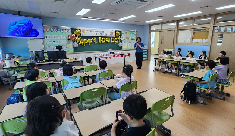 도덕초 이숙영 교장은 1학년 학생들의 100일 기념 파티에 함께 참석하여 학교생활 적응을 축하하고 이를 기념하여 학생들에게 진정한 일학년이 될 것을 응원하며 100일 기념 초콜릿 메달을 수여하였다. “교과서 속 배움이 실제의 삶과 만날 때 참된 성장이 일어나게 된다. 우리 도덕초 1학년 친구들이 앞으로 더욱 성장하여 즐겁고 건강한 학교생활을 하길 바란다.”라며 본 교육과정 운영이 유·초 학생 개개인에 미칠 긍정적 효과에 대해 이야기했다.