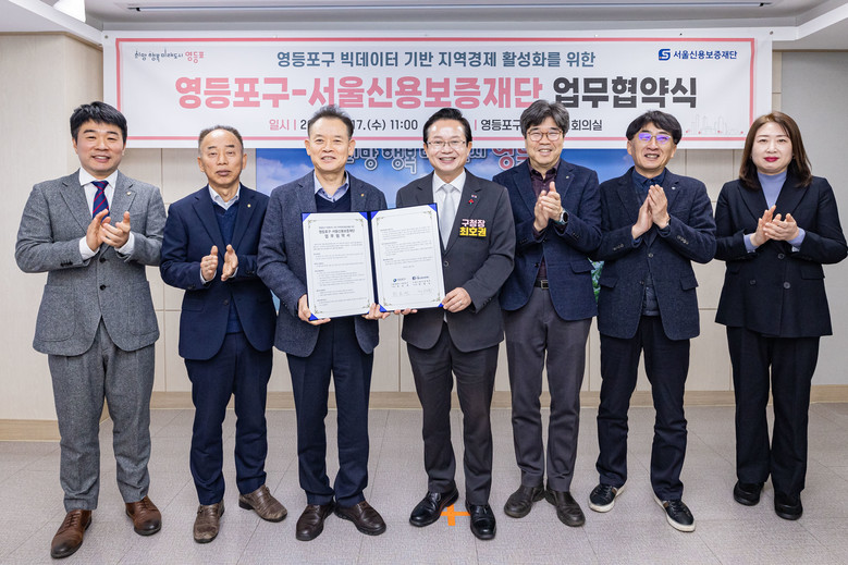 [서울 세계타임즈=이장성 기자] 서울신용보증재단(이하 서울신보)과 영등포구(구청장 최호권)는 지난 12월 17일 영등포구청에서 ‘지역경제 활성화를 위한 빅데이터 활용’ 업무협약을 체결했다. 영등포구의 정책 기획력과 서울신보의 데이터 역량을 결합해 급변하는 경영환경에 선제적으로 대응하고, 실효성 있는 소상공인 지원책을 마련하겠다는 취지다.