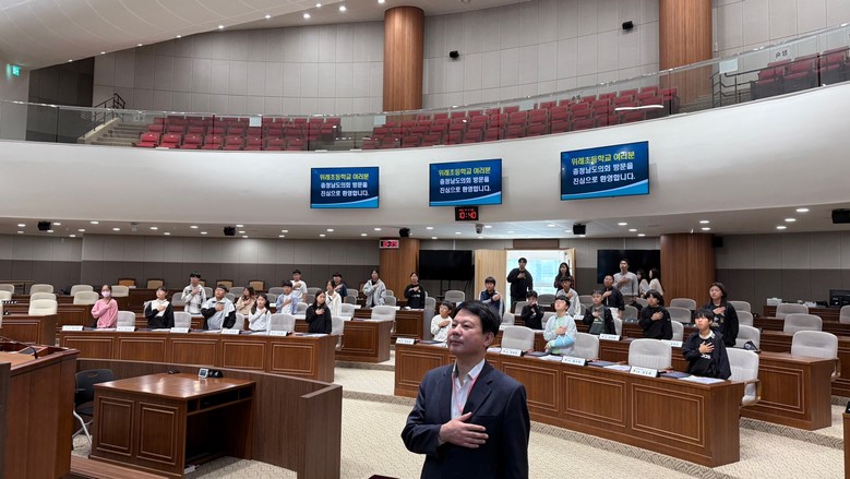 충남도의회 고효열 사무처장은 인사말을 통해 “오늘 의회교실은 청소년들이 풀뿌리 민주주의의 근간인 지방자치의 원리와 지방의회의 역할을 이해하고 배우는 계기가 되었을 것으로 기대한다”며 “미래를 향한 큰 꿈을 갖고 인성을 겸비한 지역사회의 주역이 되어 줄 것”을 학생들에게 당부했다.