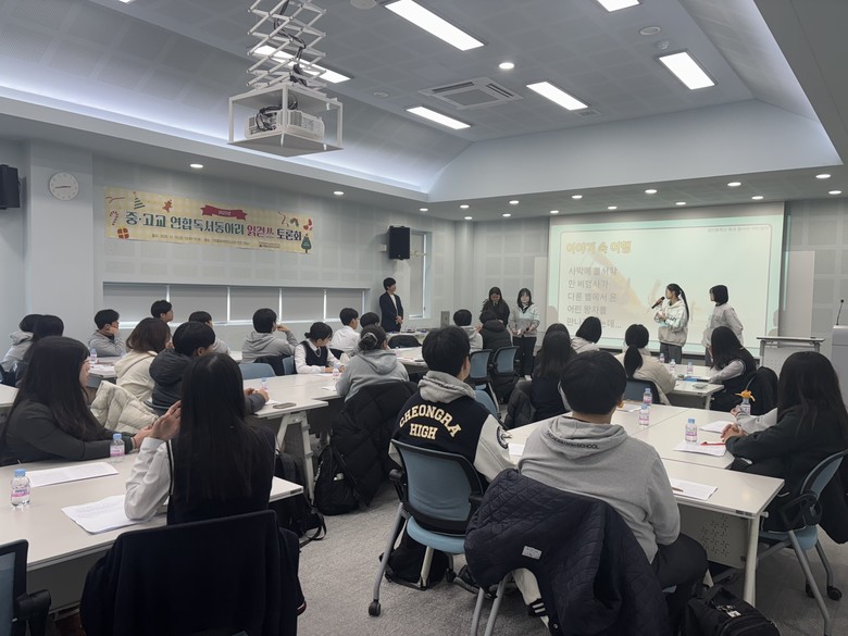 이어 김신 독서토론 전문 지도사의 진행으로 열린 비경쟁 독서토론에서는 학생들이 김동식 작가의 단편소설을 바탕으로 자유롭게 의견을 나누고, 현장 투표로 ‘올해의 도서’를 선정해 우수 동아리를 시상했다.