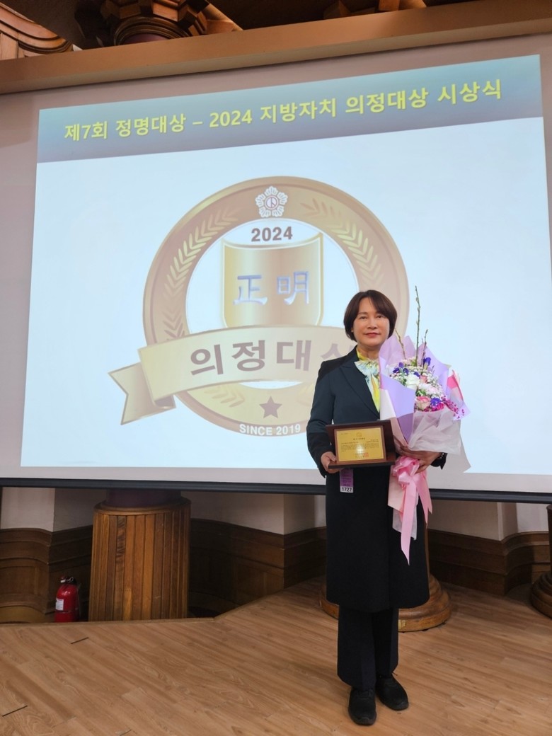 [남동구 세계타임즈=심하린 기자] 남동구의회 이정순 의장(더불어민주당/간석2‧3동, 구월2동)은 지난 23일 국회의원회관 제1소회의실에서 열린 ‘유권자 정책제안 및 제7회 정명대상 지방자치 의정대상시상식’에서 ‘지방자치 의정대상’을 수상했다.