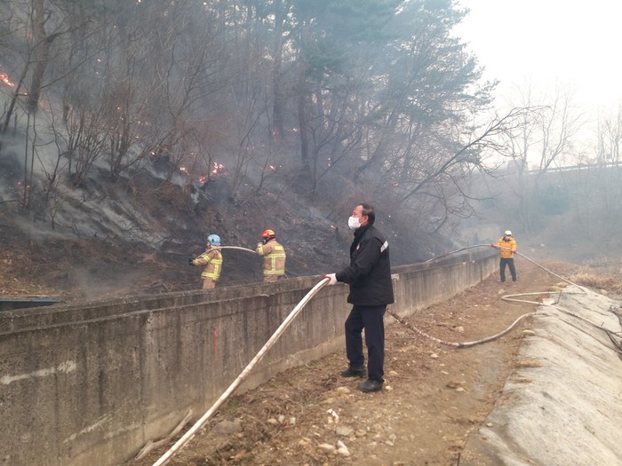 [동해시=세계타임즈 김민석 기자] 동해시의회(의장 김기하)는 5일 강릉 옥계 산불 발생과 관련, 용호사 인근 산불현장을 찾아 산불진화 작업에 참여하고, 산불진화대 비상근무자들을 격려하였다.
