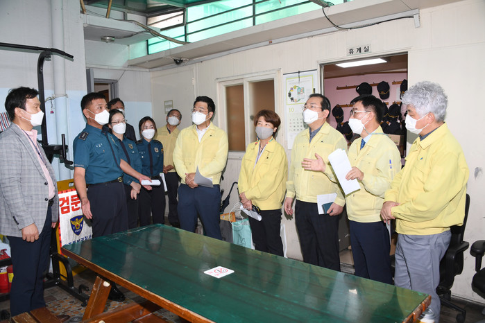 [광주=세계타임즈 손권일 기자] 광주광역시의회 행정자치위원회(위원장 이홍일)는 자치경찰제가 본격 시행 된 지 백여일이 경과한 시점에서, 시행 초기 자치경찰 실태 파악을 위해 10월 15일 금남지구대와 효덕지구대를 차례로 방문하여 자치경찰 업무 수행 현황과 실태를 점검하고 현장 직원들의 노고를 격려하였다.