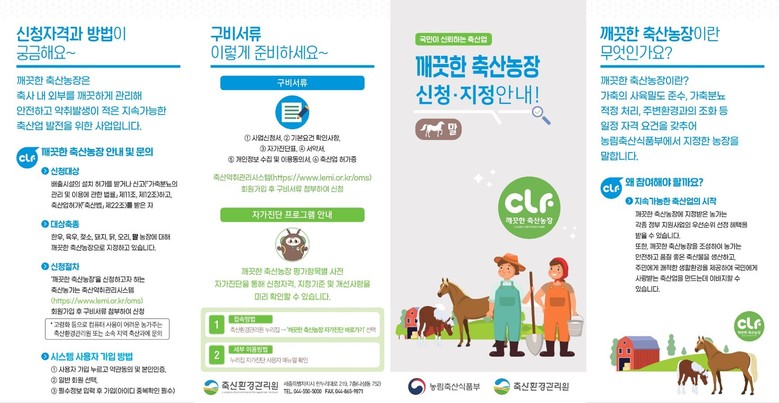 ‘깨끗한 축산농장’은 농림축산식품부 주관 인증 제도로, 축사 내·외부 위생 관리, 가축분뇨 적정 처리, 악취 저감 등 엄격한 기준을 충족한 농가에 부여된다. 이 제도는 농가의 자발적 환경 조성을 유도해 지속 가능한 축산업 기반을 마련하고 시민 생활환경을 개선하는 데 목적이 있다.