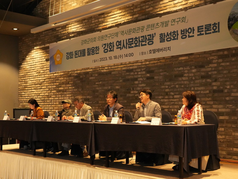 [강화군 세계타임즈=심하린 기자] 강화군의회(의장 박승한) 역사문화관광 콘텐츠개발 연구회(대표의원 박흥열)가 지난 18일 호텔 에버리치에서 '강화 돈대를 활용한 역사문화관광 활성화 방안 토론회'를 개최했다.