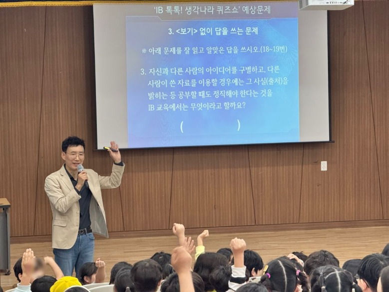 이번 퀴즈쇼는 IB 교육에 대한 이해를 높이고 학문적 정직성을 생활 속에서 실천하는 계기를 마련하기 위해 마련된 행사로, 학교장이 직접 주관하는 학년별 맞춤형 퀴즈 프로그램으로 진행된다.