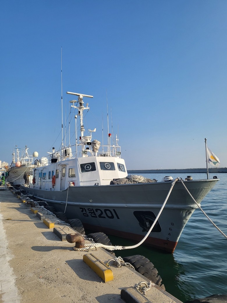 강정호 의원(속초1)이 정박 중인 어업지도선을 방문한 뒤, 담당 부서인 환동해본부에 어업지도선 운영계획을 요청하여 살펴본바, 한국해양교통안전공단에 요청하여 진행된 안전진단 검사(‘22. 7월) 결과 수리비용이 과다소요되는 진단을 받게 되어 대체건조 시행 및 이에 따른 건조비용 약 40억원이 필요한 것으로 파악됐다.