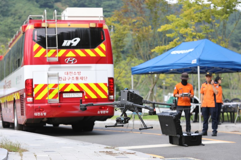 특히 400배 줌과 AI 인식 기능을 갖춘 최신 드론이 조난자를 신속히 탐지하고 좌표를 전송해 지상 구조대의 접근을 지원했다. 구조대는 부상자를 들것으로 안전하게 이송했으며, 헬기 후송 절차는 모의로 진행해 단계별 협업 체계를 점검했다.
